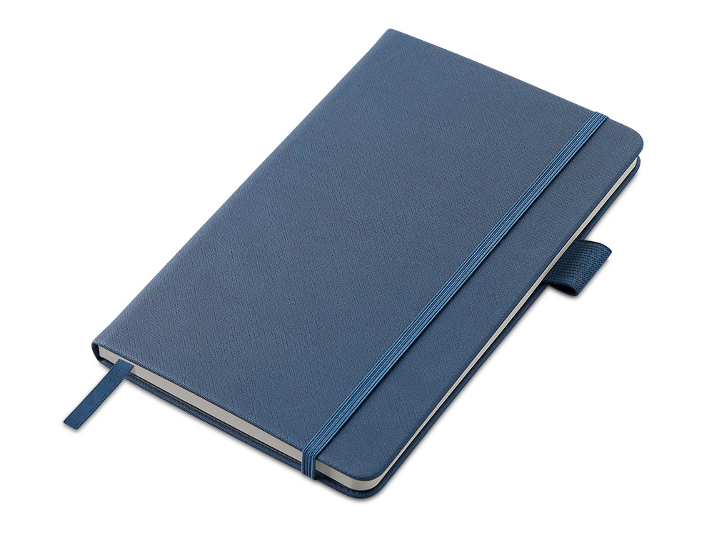Стильный блокнот в твердой обложке из текстурной искусственной кожи, приятной на ощупь.