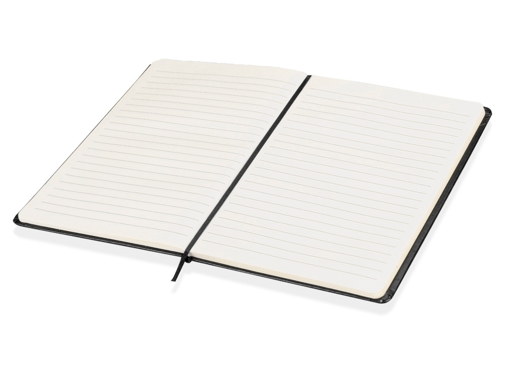 Отличный блокнот формата А5 с разлинованными листами станет прекрасным промо-сувениром. Переплет блокнота из картона и бумаги сделан под искусственную кожу. Блокнот закрывается при помощи эластичной резинки. На обложке можно выполнить тиснение.