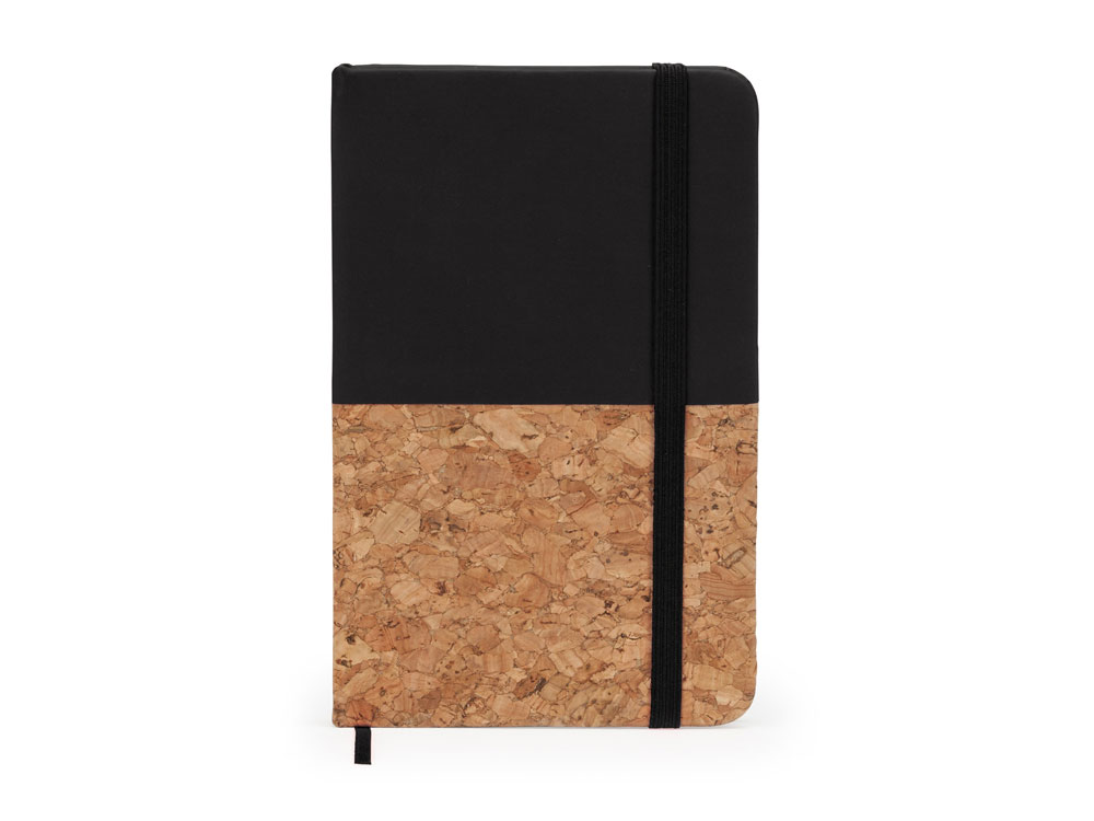 Блокнот формата А6. Комбинированная обложка из пробки/кожзаменителя. Закладка и резинка. 80 листов.