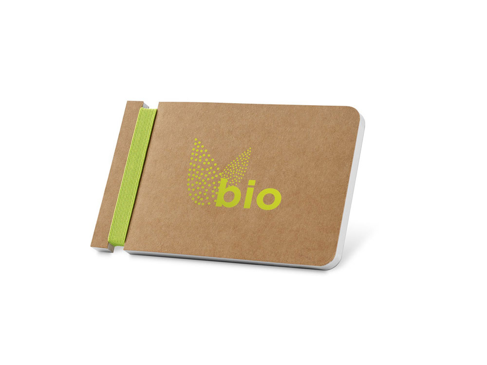 Блокнот формата B7 с 120 страницами без линовки из вторично переработанной бумаги и обложкой из картона. 85 x 125 мм