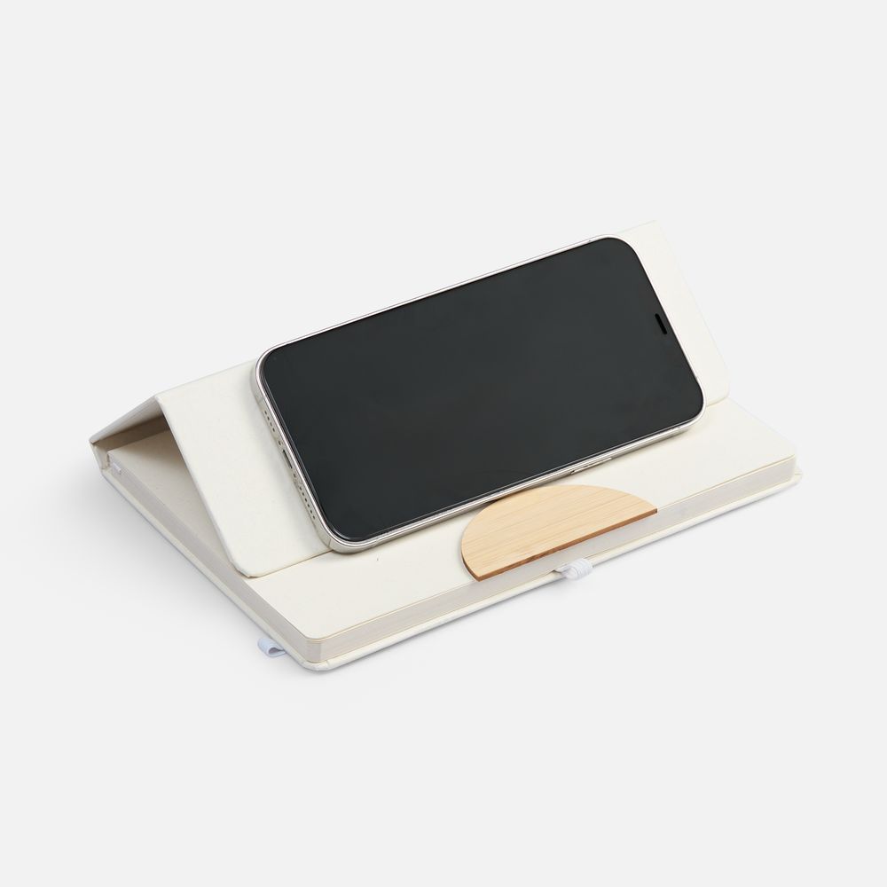 Но особенно практичным Enviro делает его оригинальная обложка со складной конструкцией: благодаря ей и деревяной вставке сбоку блокнот удобно использовать как подставку для телефона.