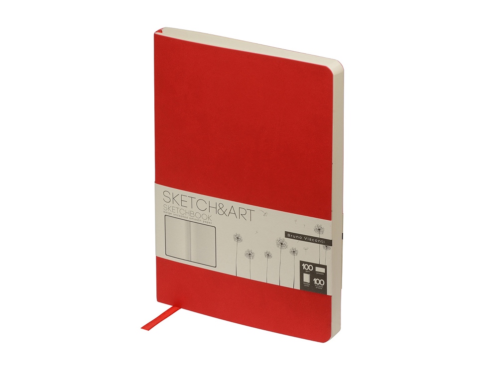Скетчбук Sketch & Art в мягком переплете 140х210 мм, 100 л. бежевой бумаги 100 гр., красный