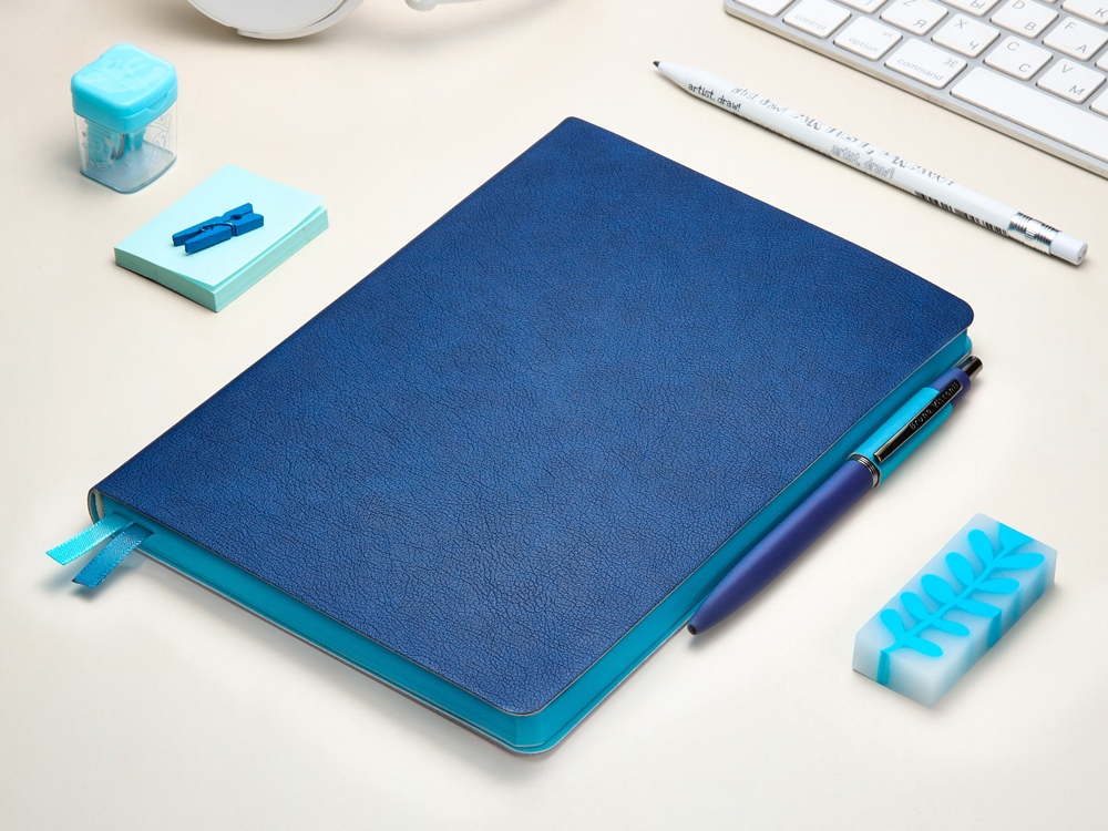 Ежедневник А5 датированный Boston 2026, синий с голубым обрезом
