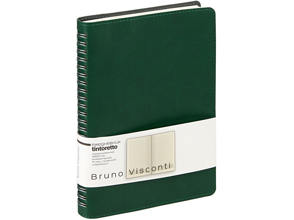 Недатированный ежедневник формата А5 Tintoretto ТМ Bruno Visconti - практичное решение для тех, кто любит ежедневники на пружине. Полускрытый гребень позволяет держать ежедневник открытым на столе и комфортно вести записи. 272 страницы блока произведены из превосходной бежевой бумаги плотностью 70 г/кв.м, а неброская линовка каждой страницы позволяет не отвлекаться на лишние детали. Гибкую обложку из искусственной кожи украшает отстрочка декоративной нитью по краю.