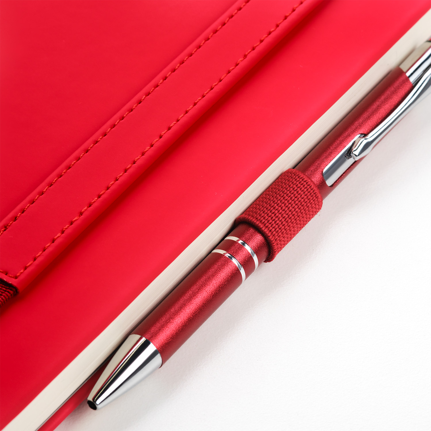 Вертикальная резинка-фиксатор с вставкой из ПУ-материала обложки и петелька под ручку, в цвет обложки