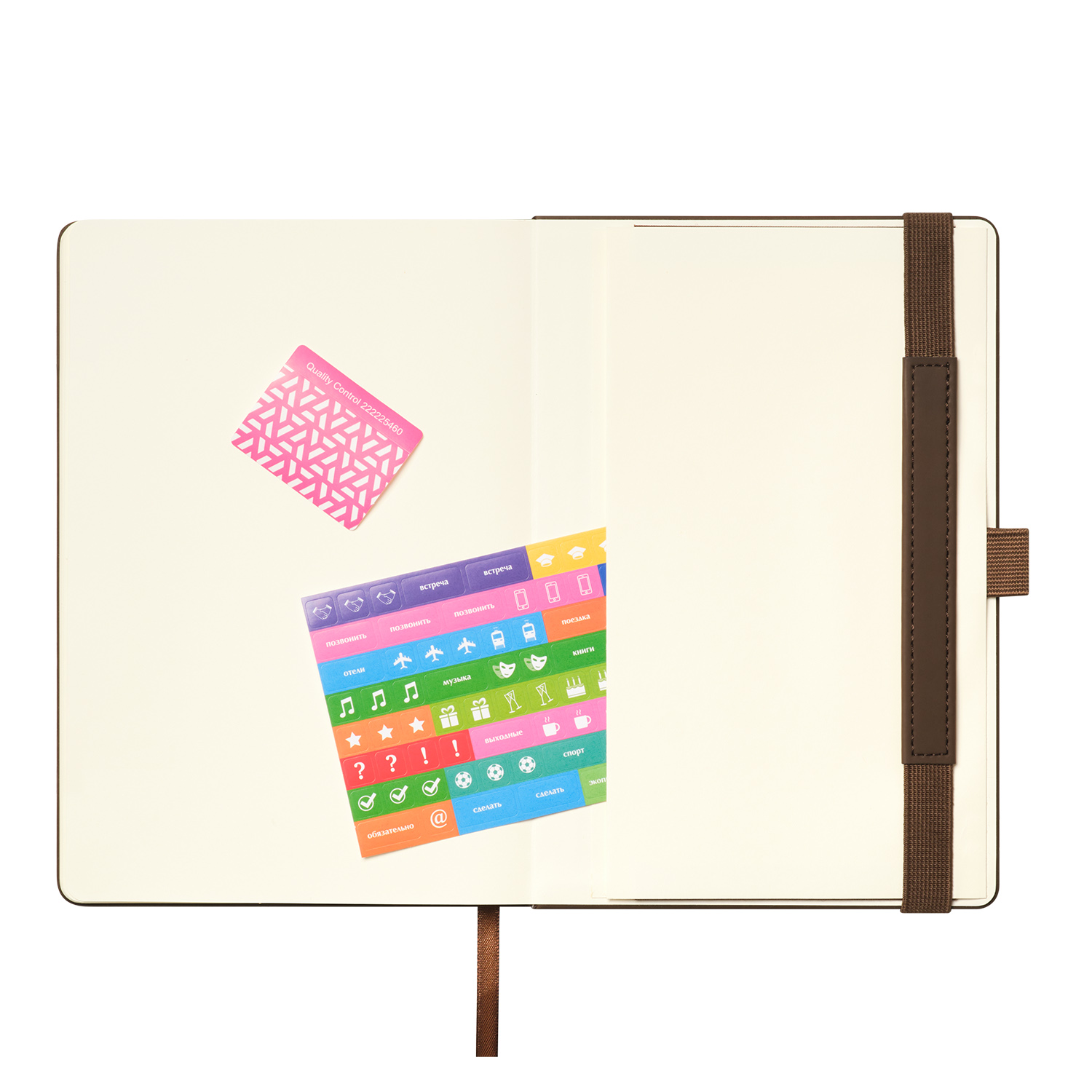 Вертикальная резинка-фиксатор с вставкой из ПУ-материала обложки и петелька под ручку, в цвет обложки