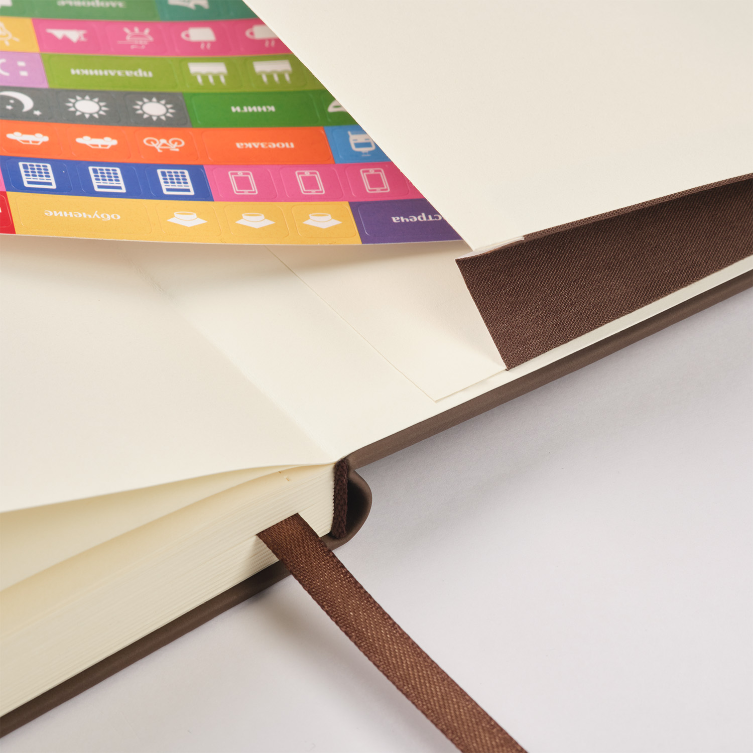 Страницы теплого кремового оттенка с легкой шелковистостью и скругленными уголками радуют глаз и приятны на ощупь. Матовый срез в тон страниц дополняет гармоничный образ. Атласное ляссе, подобранное в тон обложке, с легким блеском и шелковистой текстурой поможет вам быстро найти нужную страницу.
