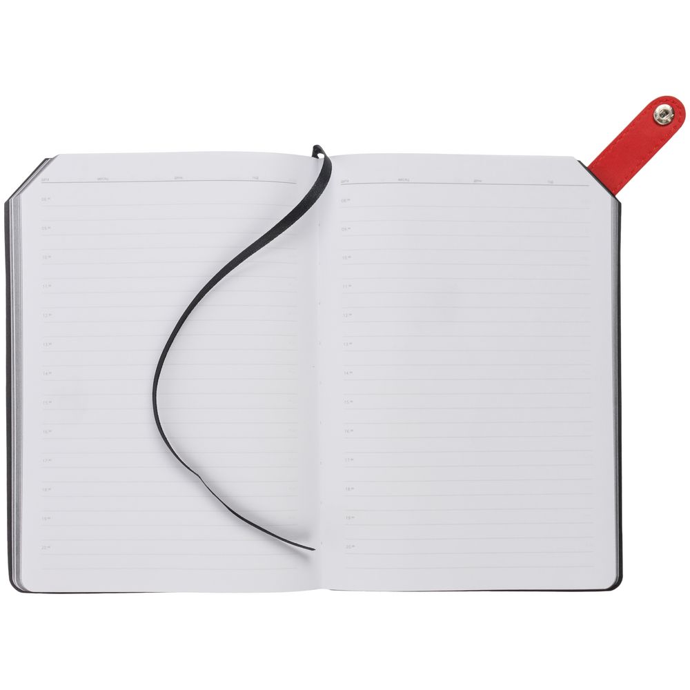 Ежедневник с гибкой обложкой и тонированным обрезом. Выполнен из материала Latte, морская волна II, дополнен черным ляссе.