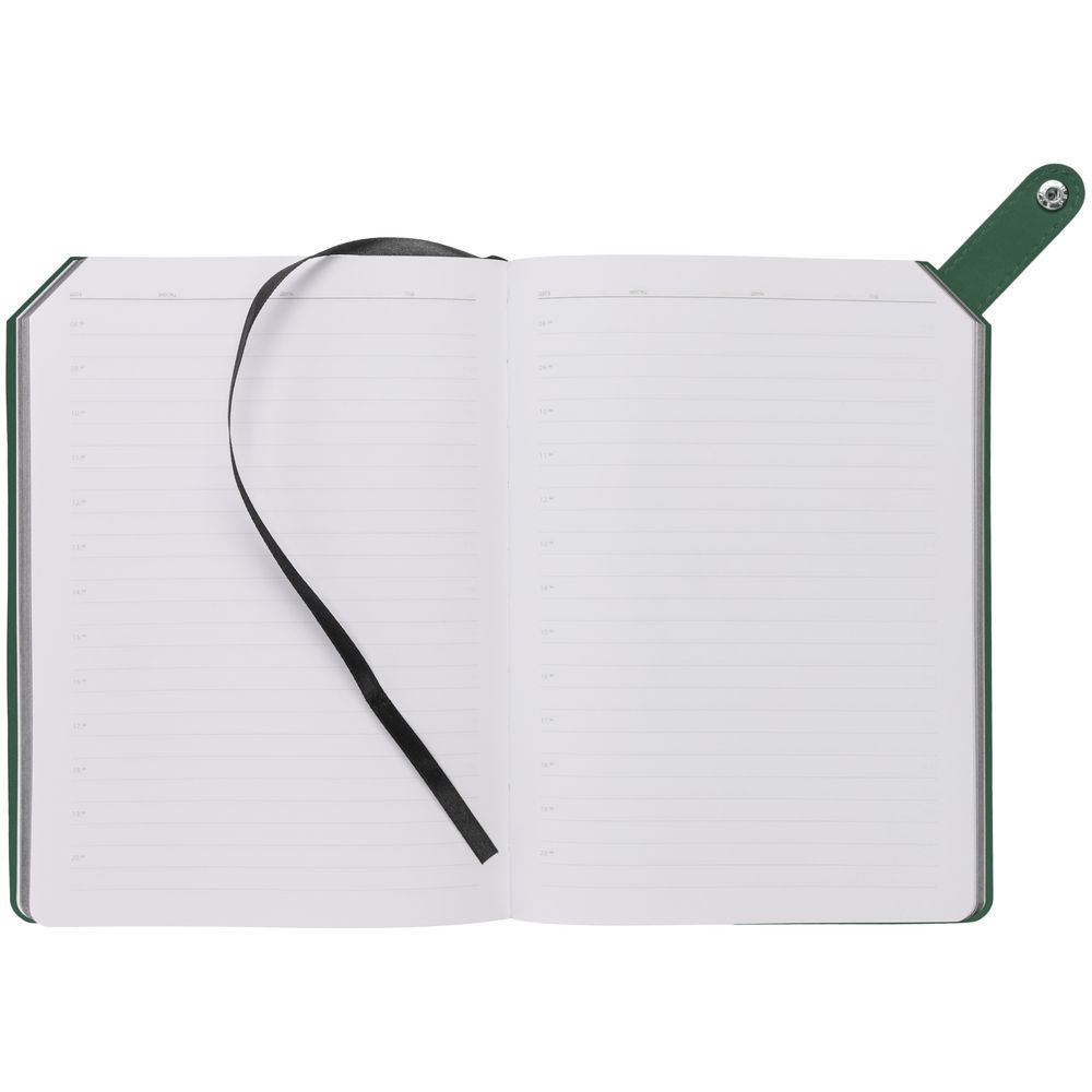 Ежедневник с гибкой обложкой и тонированным обрезом. Выполнен из материала Latte, морская волна II, дополнен черным ляссе.
