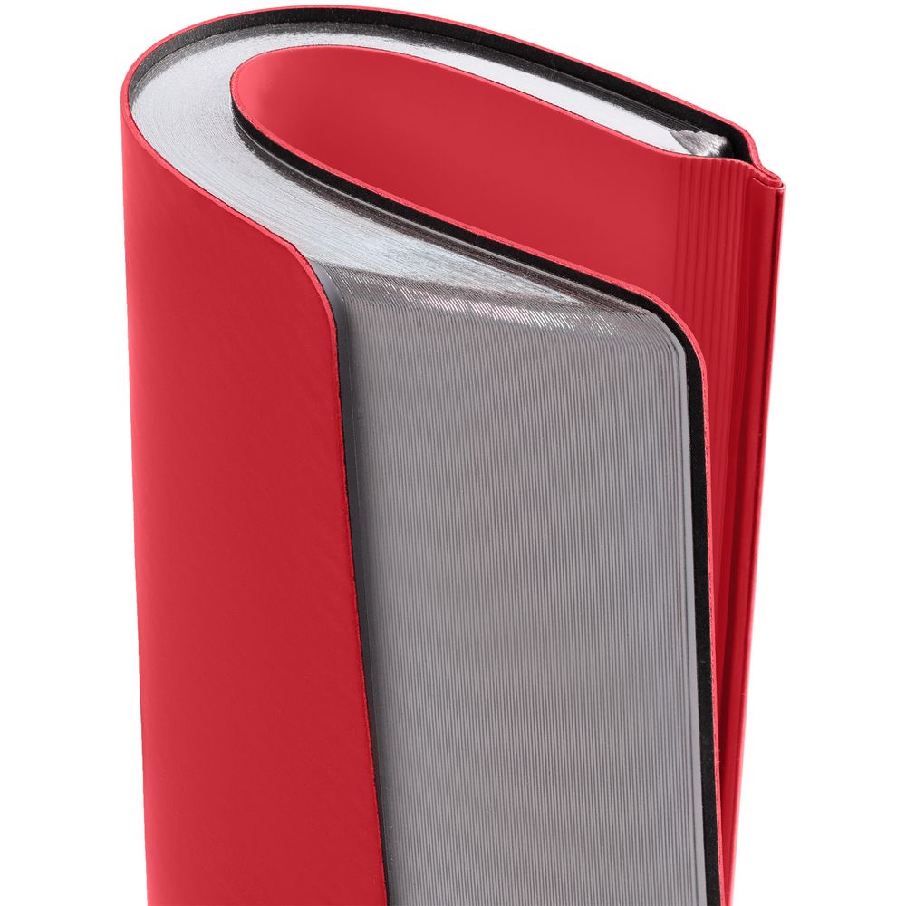 Ежедневник с гибкой обложкой и металлическим корешком, выполнен из материала Soft Touch, желтый КК, дополнен серебристым обрезом блока и ляссе.