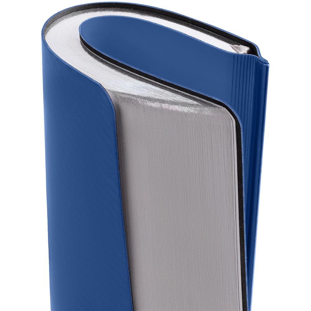 Ежедневник с гибкой обложкой и металлическим корешком, выполнен из материала Soft Touch, желтый КК, дополнен серебристым обрезом блока и ляссе.