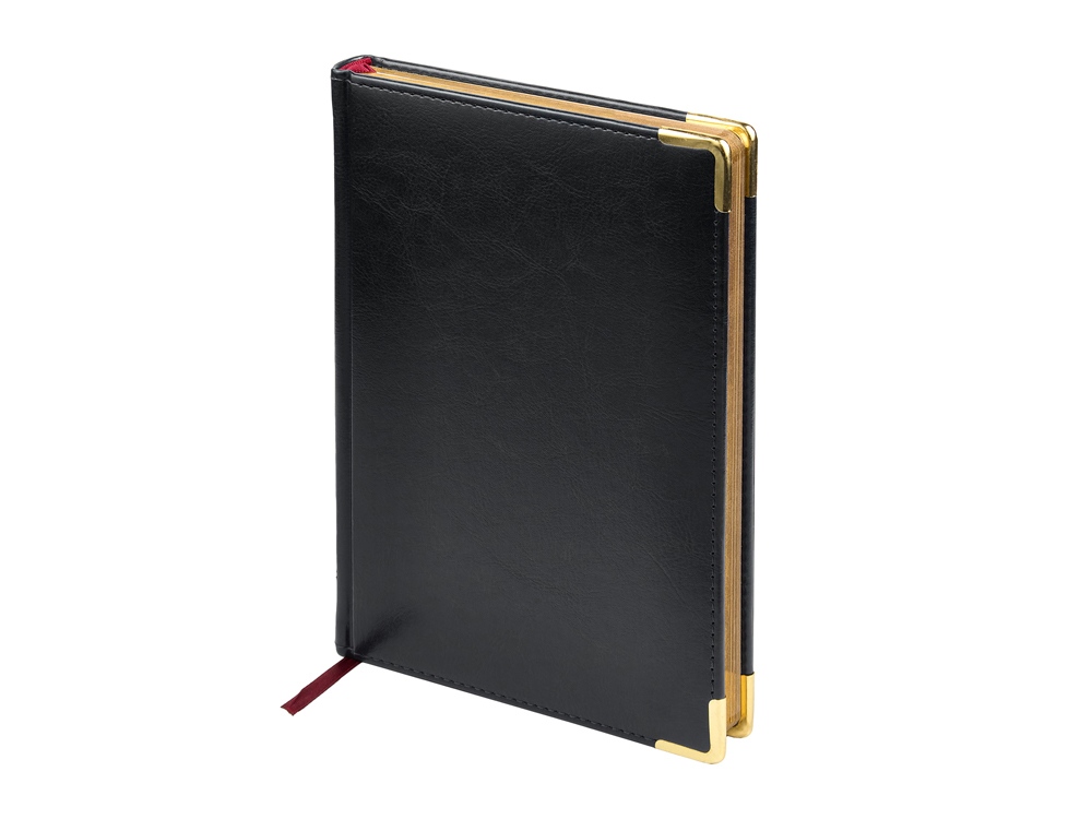 Ежедневник А5 датированный Sidney Nebraska 2026, черный (золотой обрез, золотые уголки)
