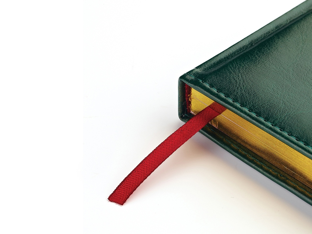 Благородство и статусность придают ежедневнику отстрочка по периметру в тон, скругленные углы, закладка-ляссе бордового цвета, серебристый срез.