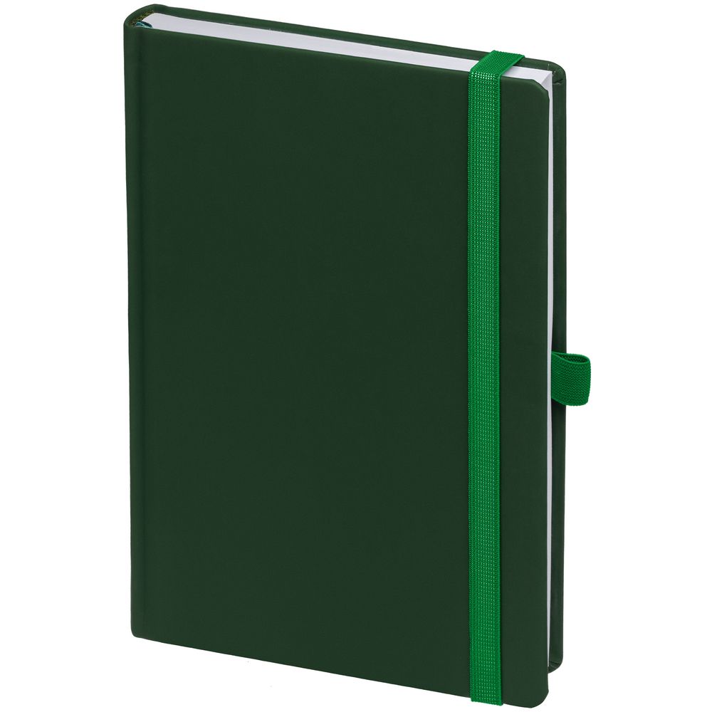 Ежедневник с твердой обложкой без поролона, выполнен из материала Soft Touch Ultra, зеленый FF, дополнен резинкой шириной 1 см, петлей-резинкой для ручки, капталом и ляссе ярко-зеленого цвета.