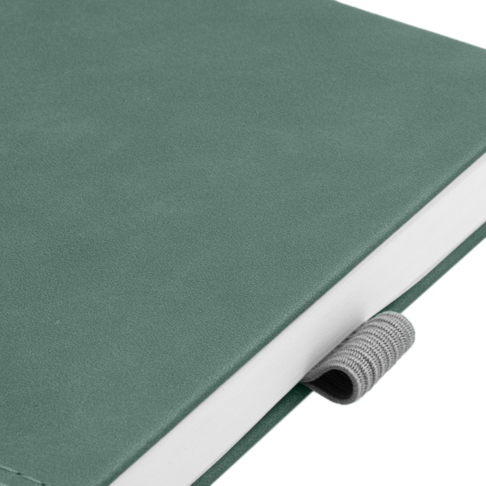 Ежедневник с твердой обложкой, без поролона, со сшивкой материалов Nubuck Touch, серый СС, и Nubuck Touch голубой JJ, дополнен двойным ляссе и петлей-резинкой для ручки.