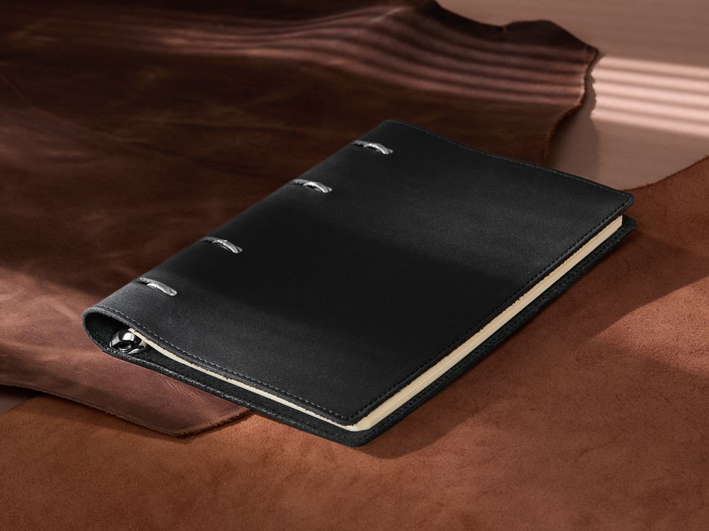 Ежедневник с блоком на кольцах, выполнен из натуральной кожи.