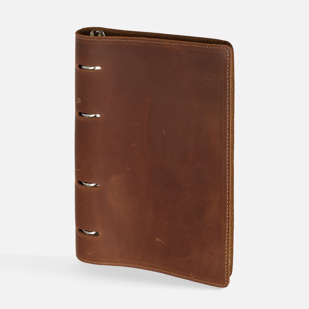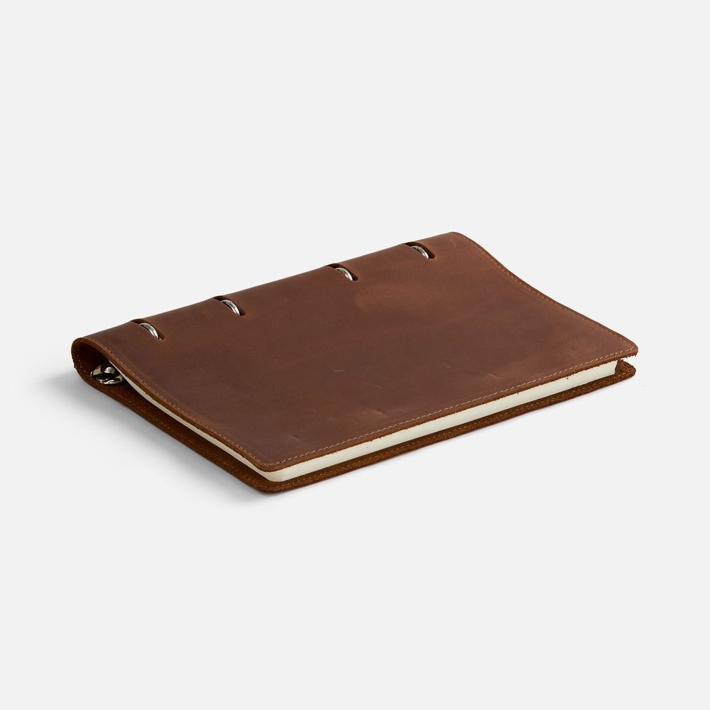 Ежедневник с блоком на кольцах, выполнен из натуральной кожи.