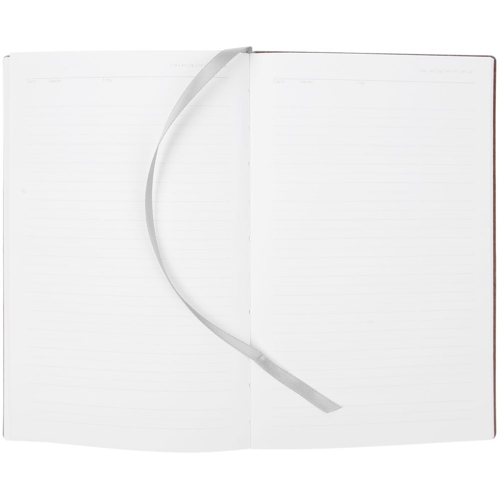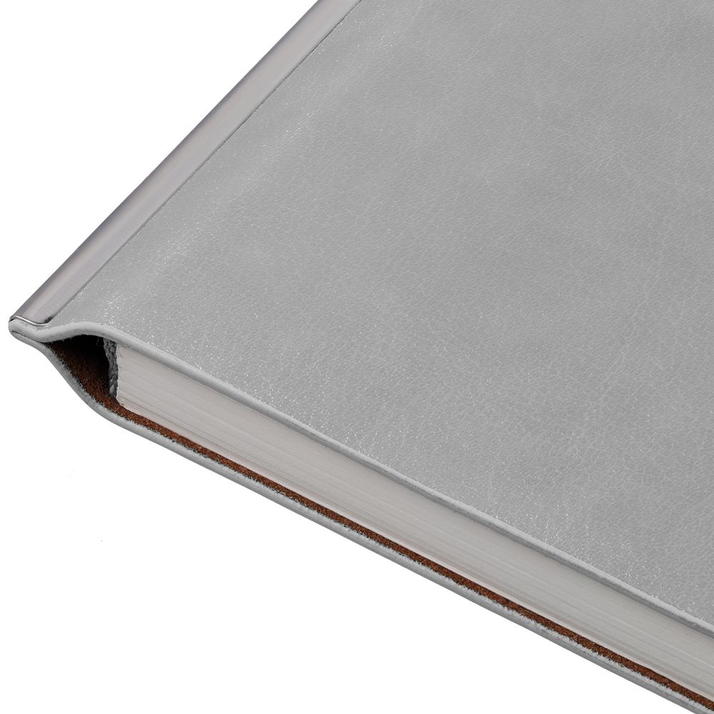 Ежедневник с гибкой обложкой, выполнен из материала Waltz, дополнен металлическим хромированным корешком. Корешек оклеен бирюзовой пленкой для защиты от царапин, снимите ее перед использованием.