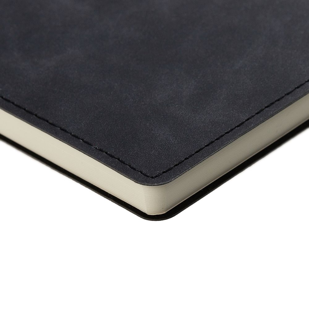 Ежедневник 17х24 см, с гибкой обложкой, выполнен из материала Nubuck Touch, темно-серый ЕЕ, дополнен петлей-лейблом для ручки и двойным ляссе в цвет материала.