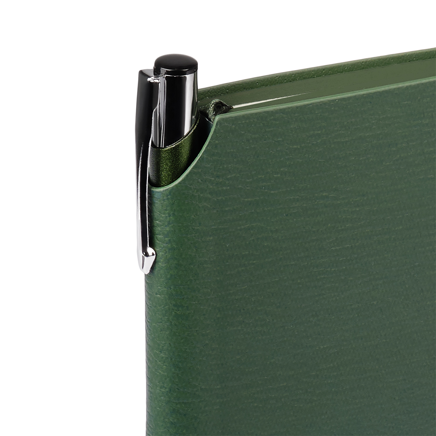 Удобный держатель для ручки, расположенный на корешке, делает этот ежедневник идеальным спутником для деловых людей. Гармоничное сочетание цвета обложки, форзаца, нахзаца и среза, а также атласное ляссе в тон, завершают образ стильного и функционального помощника.