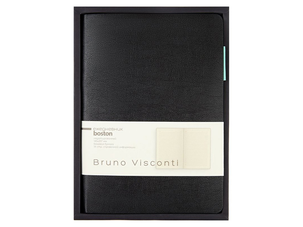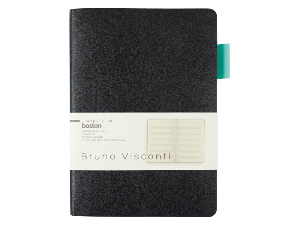Ежедневник недатированный А5 Boston, черный (бирюзовый обрез)