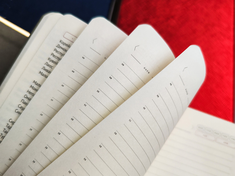 В ежедневнике Bridge есть полезная справочная информация на русском языке, а также 272 страницы для записи идей, мыслей и составления рабочих планов. День недели указан на английском языке. Для изготовления страниц используется качественный офсет, тонированного в кремовый цвет (70 г/кв м), который производится в Японии и подходит для всех видов чернил.