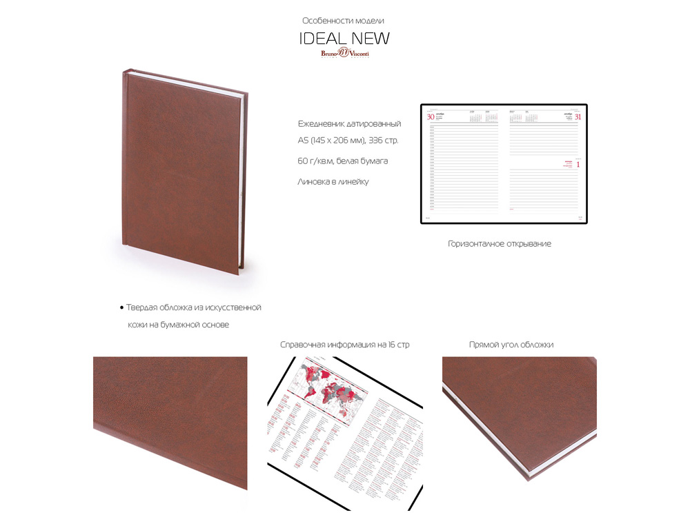 Недатированный ежедневник A5 Ideal New от бренда Альт - это качественный корпоративный подарок по выгодной цене, произведенный специально под персонализацию. Представлен в универсальном формате А5. Твердый переплет. Печать блока в 2 цвета. Обложка - итальянский переплетный материал на бумажной основе.