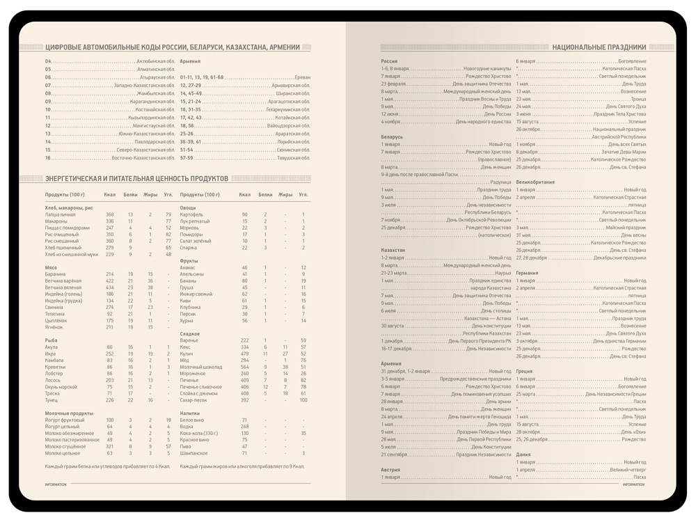 В ежедневнике Megapolis Flex есть полезная справочная информация и телефонная книга, а также страницы для записи идей, мыслей и составления рабочих планов. Для изготовления страниц используется качественный бежевый офсет повышенной плотности (70 г/кв м). Блок не привязан к конкретным датам – они указываются в выделенном поле вверху страницы. Тонированная бумага не дает глазам утомиться даже при длительной работе.