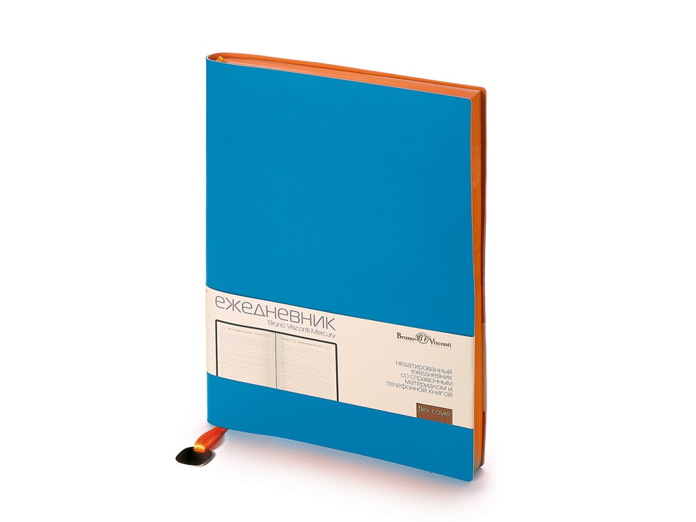 Недатированный ежедневник Mercury от бренда Bruno Visconti - это качественный корпоративный подарок по выгодной цене, произведенный специально под персонализацию. Представлен в современном формате А5. Обложка ежедневника выполнена из современного переплетного материала с двойной закладкой с шильдом. Цветной край блока, а также отделка листов цветными деталями - это переплетение технологических новинок и оригинальных дизайнерских решений.