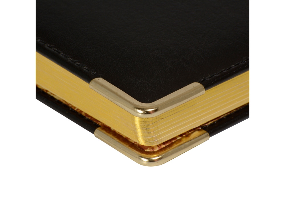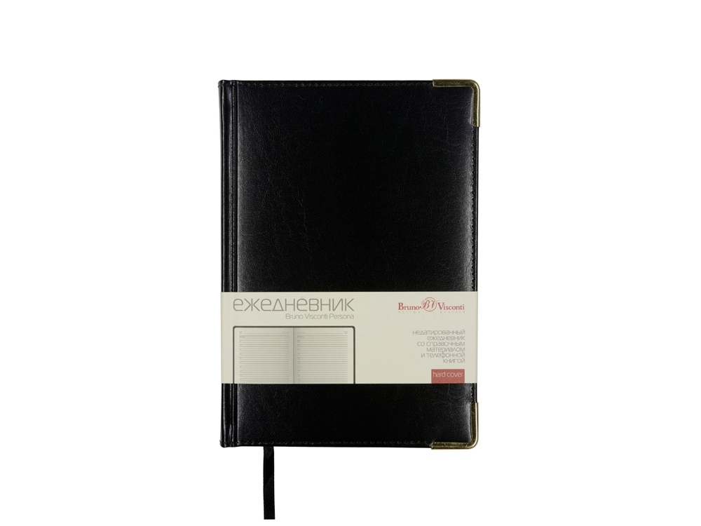 Ежедневник Persona – идеальный баланс между практичностью и статусностью. Великолепный переплетный материал прошит тонкой шелковой нитью в цвет обложки. Благородство в облик ежедневника добавляют металлические уголки и серебряный обрез. На контрасте с темным цветом обложки, блок состоит из листов бежевого цвета плотностью 70 г/кв.м. Раздел планирования дополнен справочной информацией на 14 страницах и телефонной книгой на 19 страницах. Вечная и никогда не стареющая классика!
