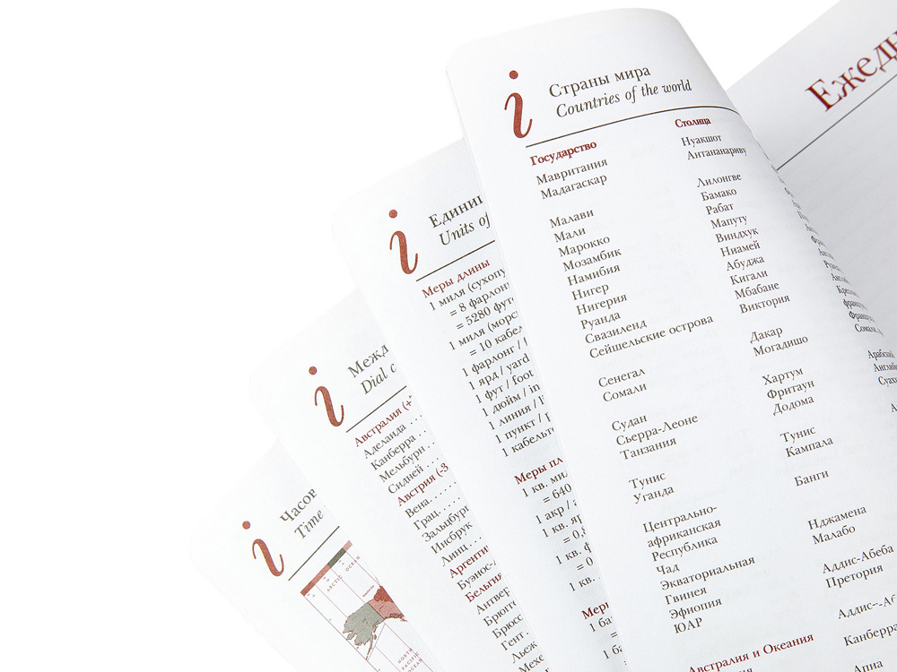 В ежедневнике Sidney Nebraska есть полезная справочная информация и телефонная книга на 18 листов, а также 272 страницы для записи идей, мыслей и составления рабочих планов. Для изготовления страниц используется качественный белый офсет повышенной плотности (70 г/кв м) с золотым срезом, который производится в Японии и подходит для всех видов чернил. Разметка блока с указанием времени позволяет планировать дела с точностью до 1 часа.