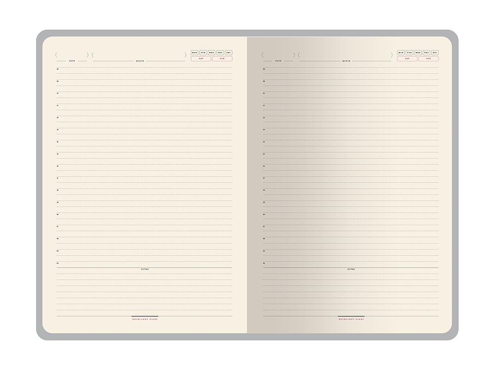 В ежедневнике Leggenda есть полезная справочная информация, а также 272 страницы для записи идей, мыслей и составления рабочих планов.. Для изготовления страниц используется качественный бежевый офсет повышенной плотности (70 г/кв м), который производится в Японии и подходит для всех видов чернил. Блок, отпечатанный в две краски, разлинован в линейку, где рядом с графами указано время. На форзаце обложки есть отдельный карман для хранения визиток, бумаг и записок.