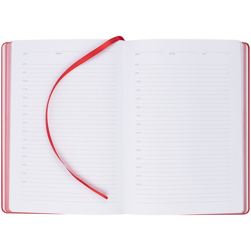 Ежедневник с твердой обложкой, выполнен из материала Latte, желтый КК, обрез зеленого цвета, дополнен ляссе желтого цвета и резинкой с металлическим шильдом.