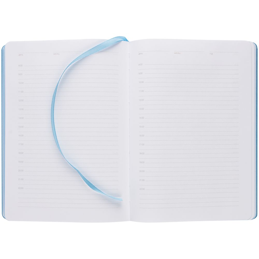 Ежедневник с твердой обложкой, выполнен из материала Latte, желтый КК, обрез зеленого цвета, дополнен резинкой и ляссе желтого цвета.
