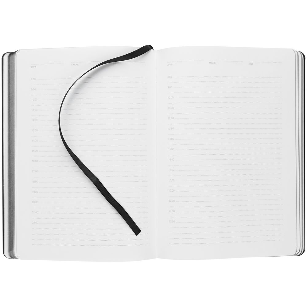 Ежедневник с твердой обложкой, выполнен из материала Latte, желтый КК, обрез зеленого цвета, дополнен резинкой и ляссе желтого цвета.