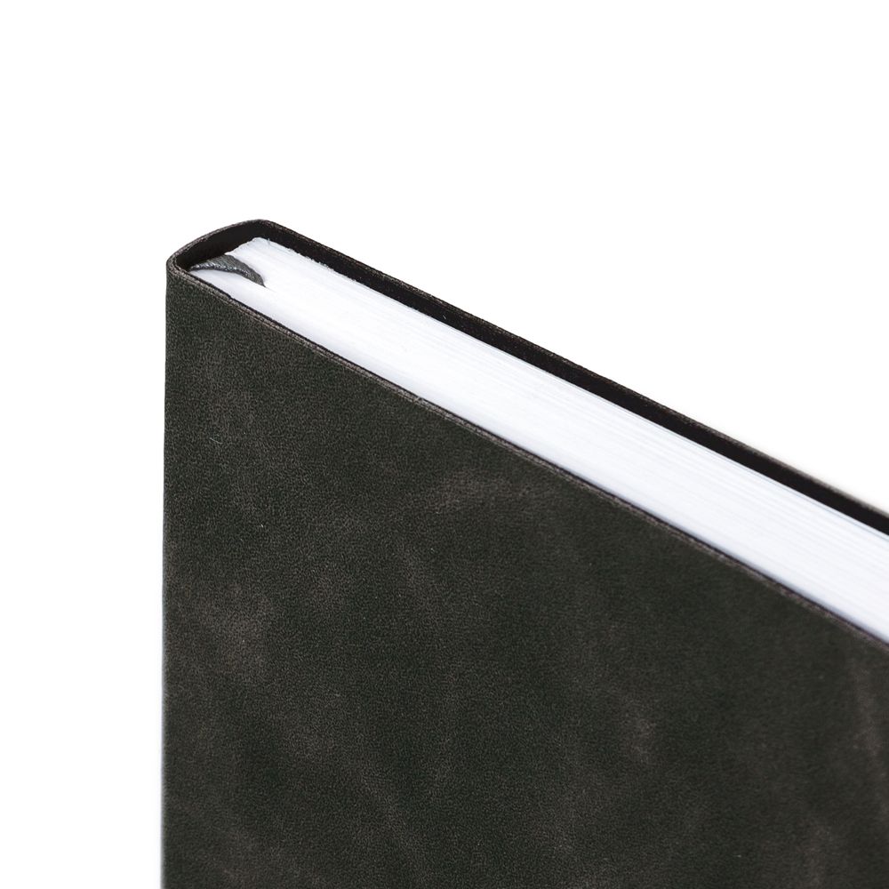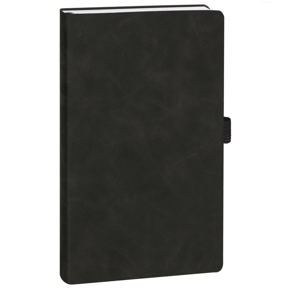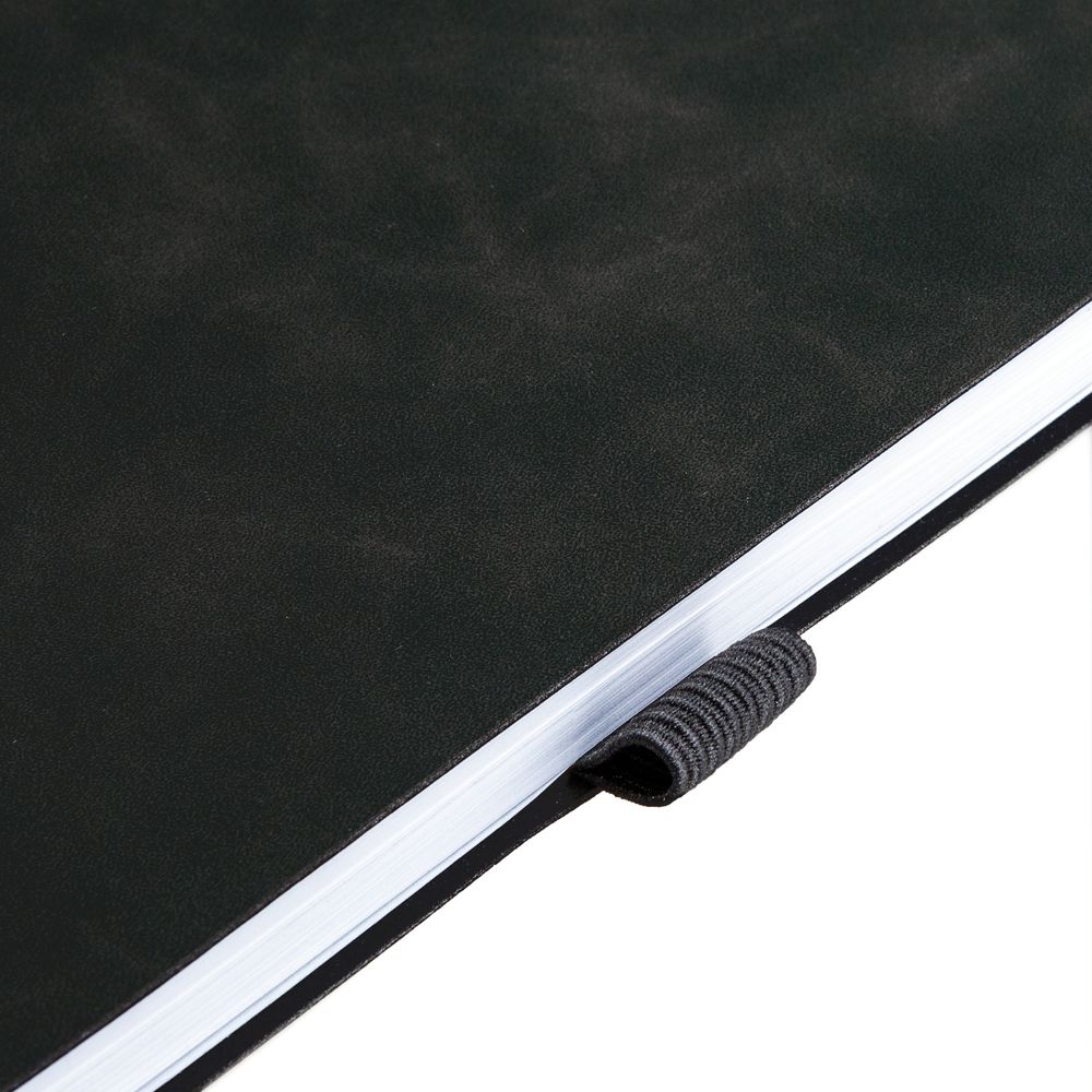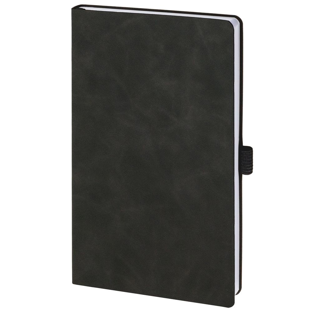 Ежедневник с гибкой обложкой, выполнен из материала Nubuck Touch, темно-серый EE, дополнен ляссе и петлей-резинкой для ручки черного цвета.