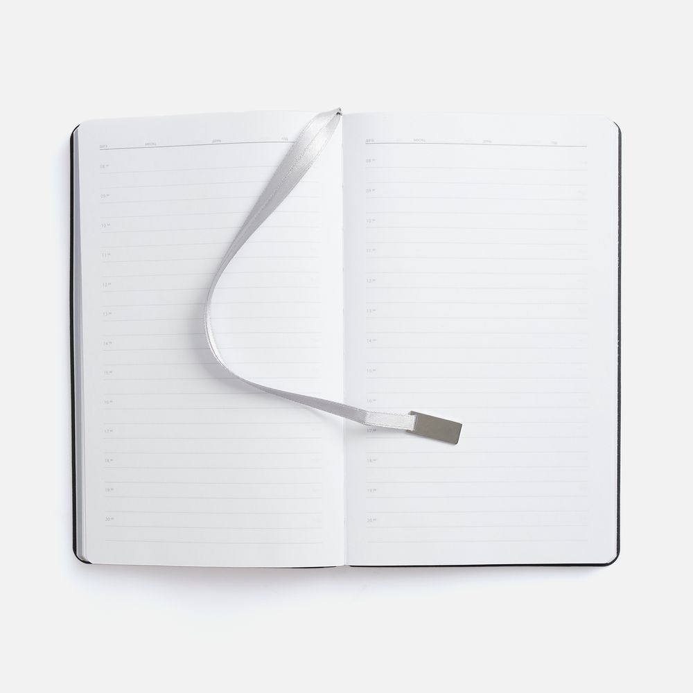 Ежедневник с гибкой обложкой, выполнен из материала Petrus, красный РР, дополнен серым ляссе с металлическим шильдиком.