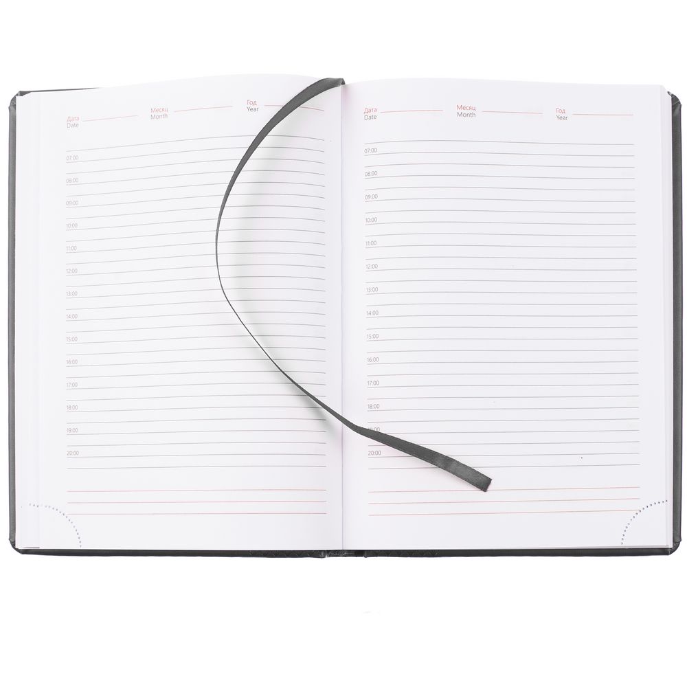 Ежедневник с твердой обложкой, выполнен из материала Waltz, фиолетовый UU, дополнен ляссе в цвет материала.
