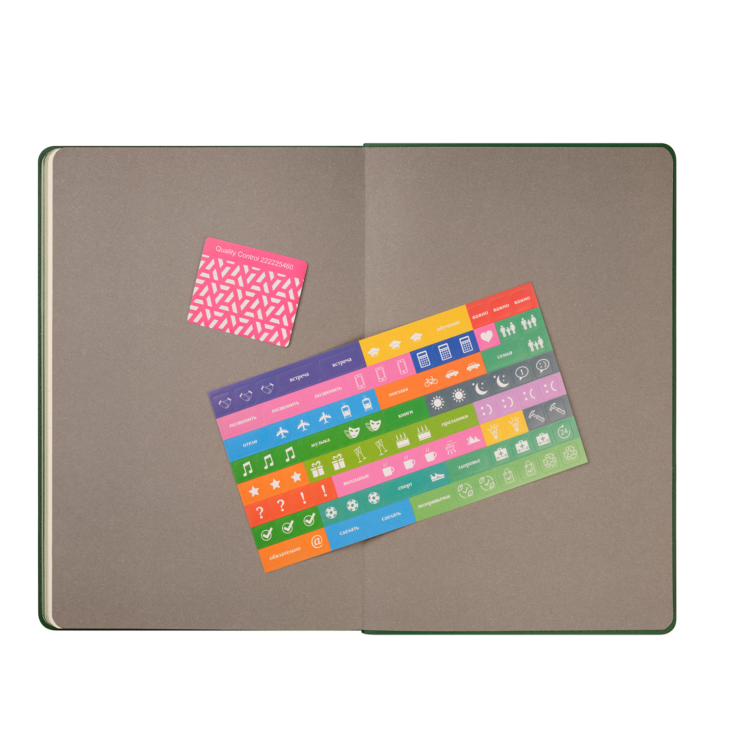 Глубокий, насыщенный цвет обложки гармонично сочетается с матовыми серыми форзацем и нахзацем. Скругленные уголки страниц и матовый срез блока, идеально подобранный в тон обложке, добавляют изысканности.