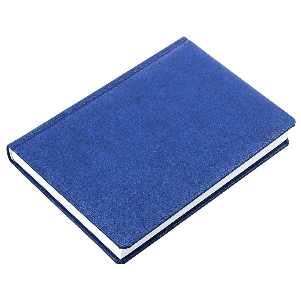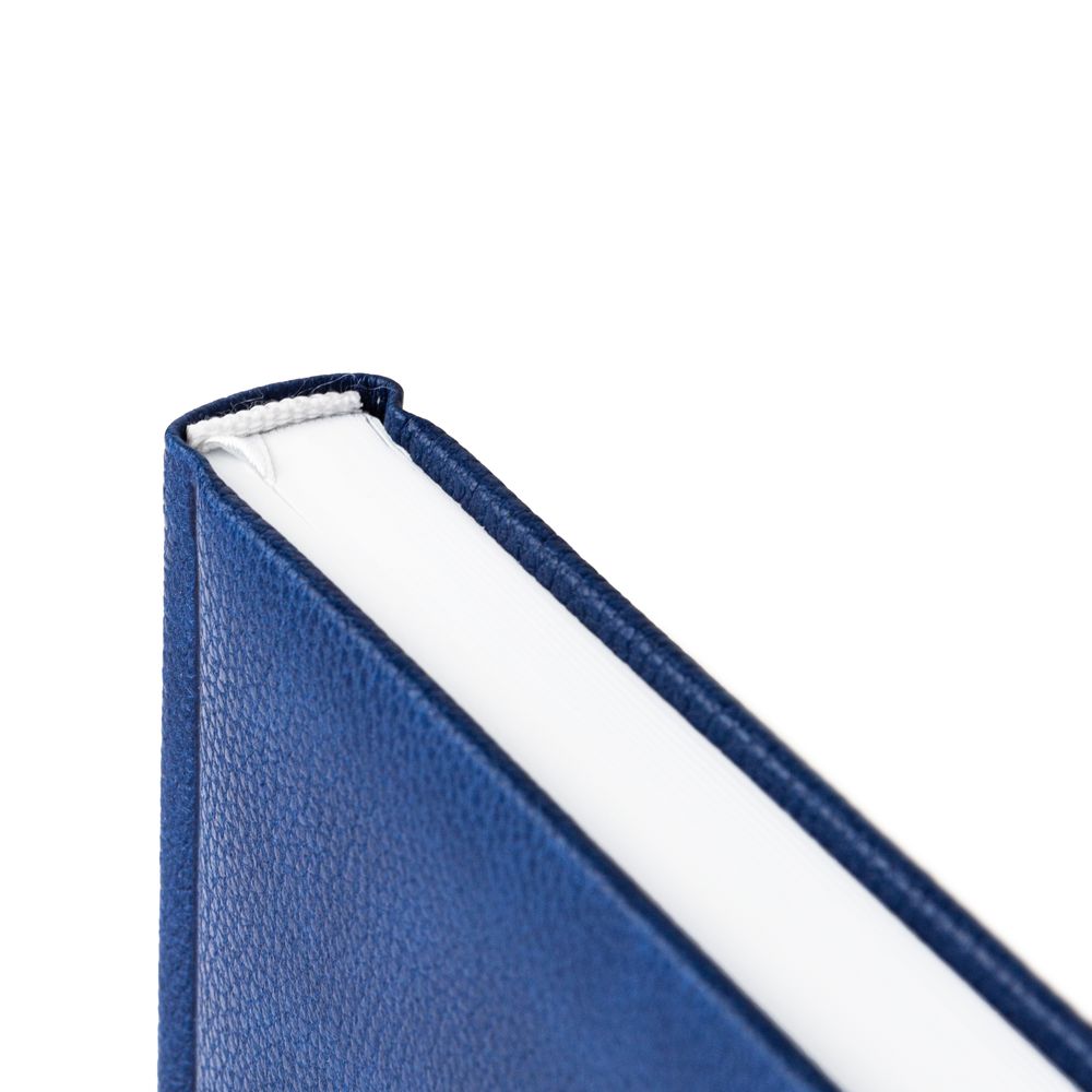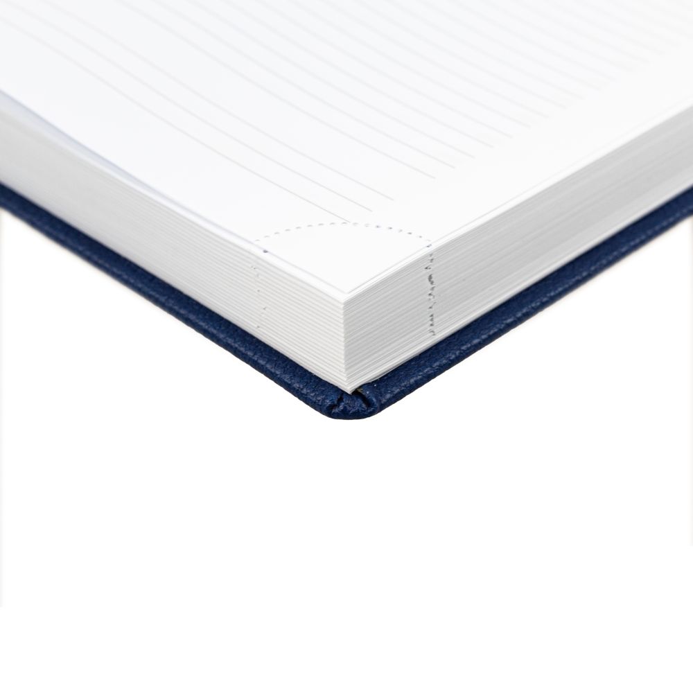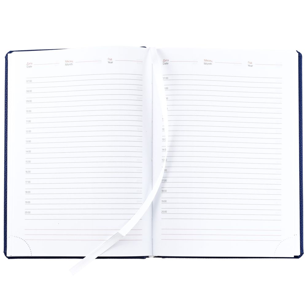 Ежедневник в твердой обложке c поролоном, выполнен из материала La Fite, темно-синий ХХ, дополнен ляссе белого цвета.