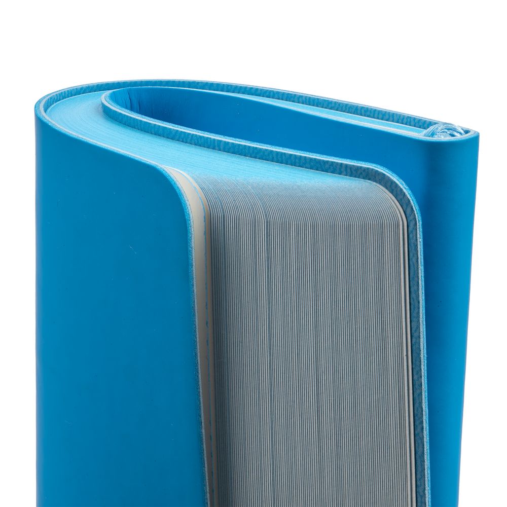 Ежедневник с гибкой обложкой, выполнен из материалов Soft Touch, цвет морской волны II, и Latte, цвет морской волны (внутренняя часть обложки), дополнен ляссе в цвет обложки с металлическим шильдиком.