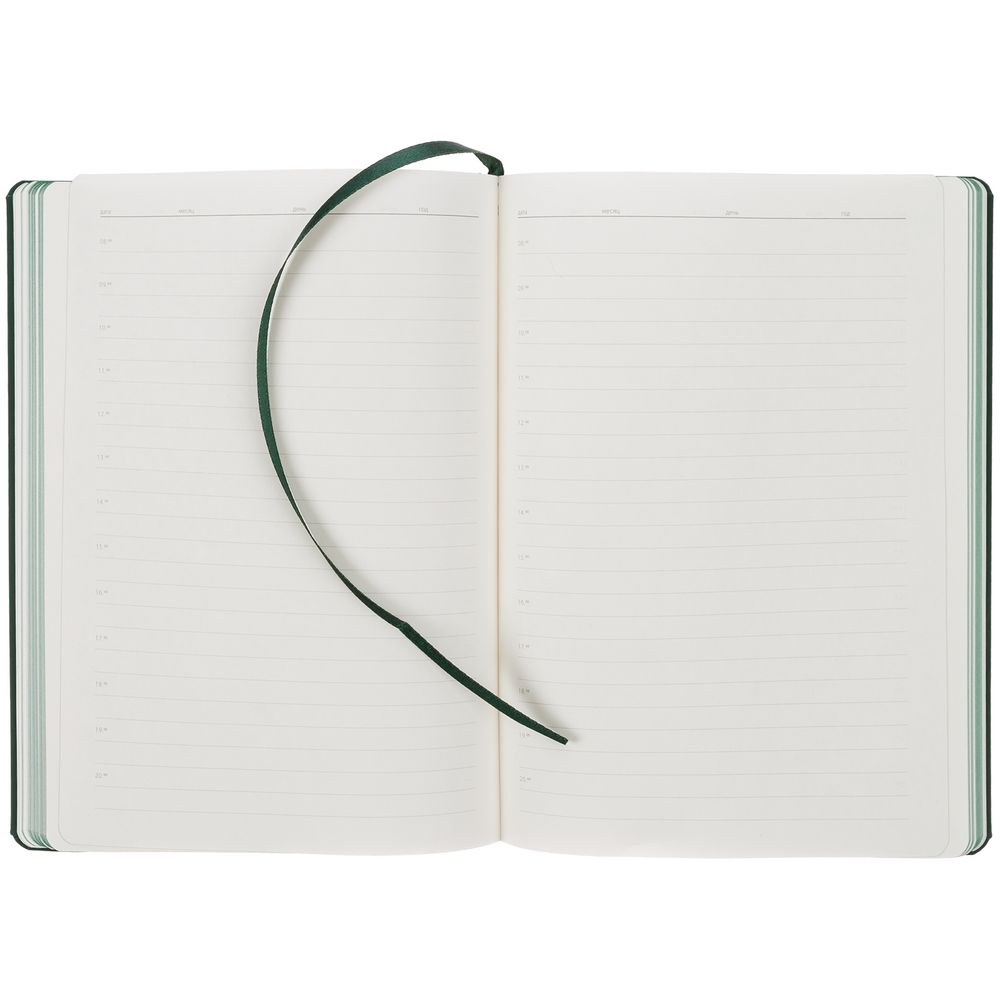 Ежедневник с твердой обложкой и тонированным обрезом, выполнен из материала Soft Touch, черный АА, дополнен ляссе в цвет обложки.