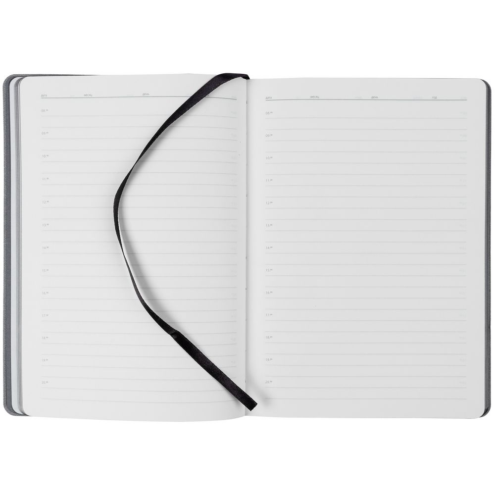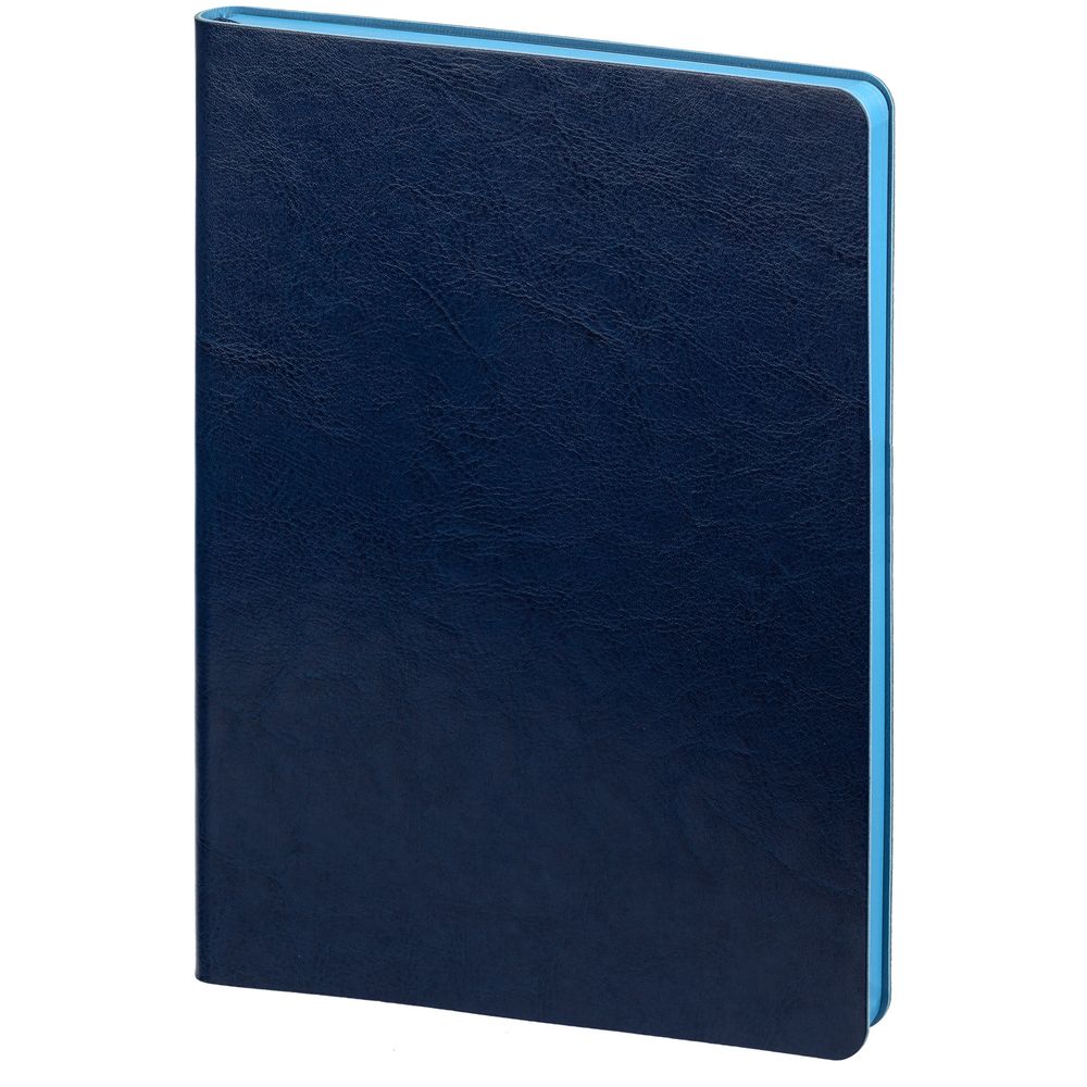 Ежедневник с гибкой обложкой, выполнен из материала Vintage, темно-синий ХХ и Latte, темно-синий ХХ, дополнен ляссе в цвет обложки.
