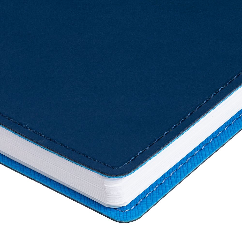 Ежедневник с гибкой обложкой, выполнен из материалов Soft Touch, цвет морской волны II и Nice touch, серый СС.