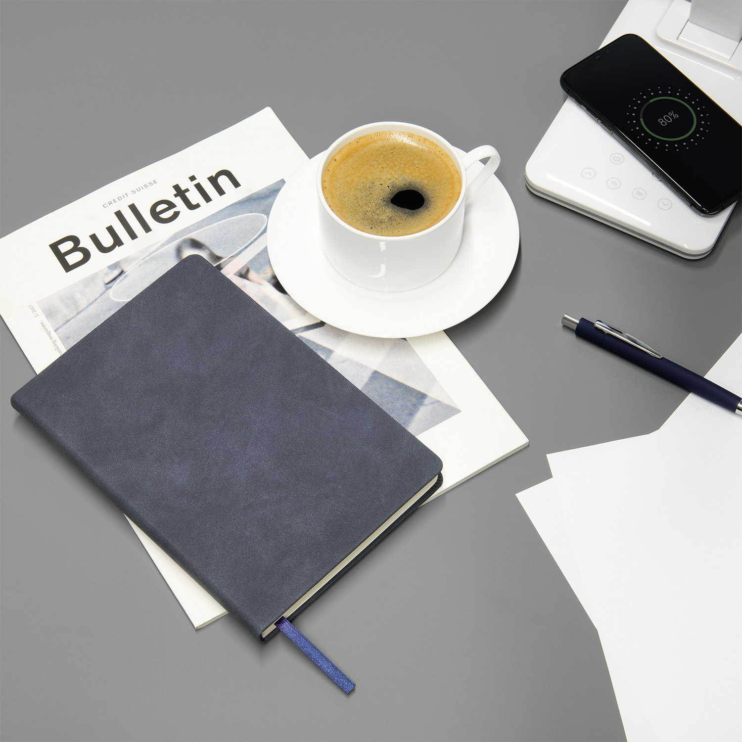 Обложка: жесткая, со встроенным магнитом, удерживающим ручку