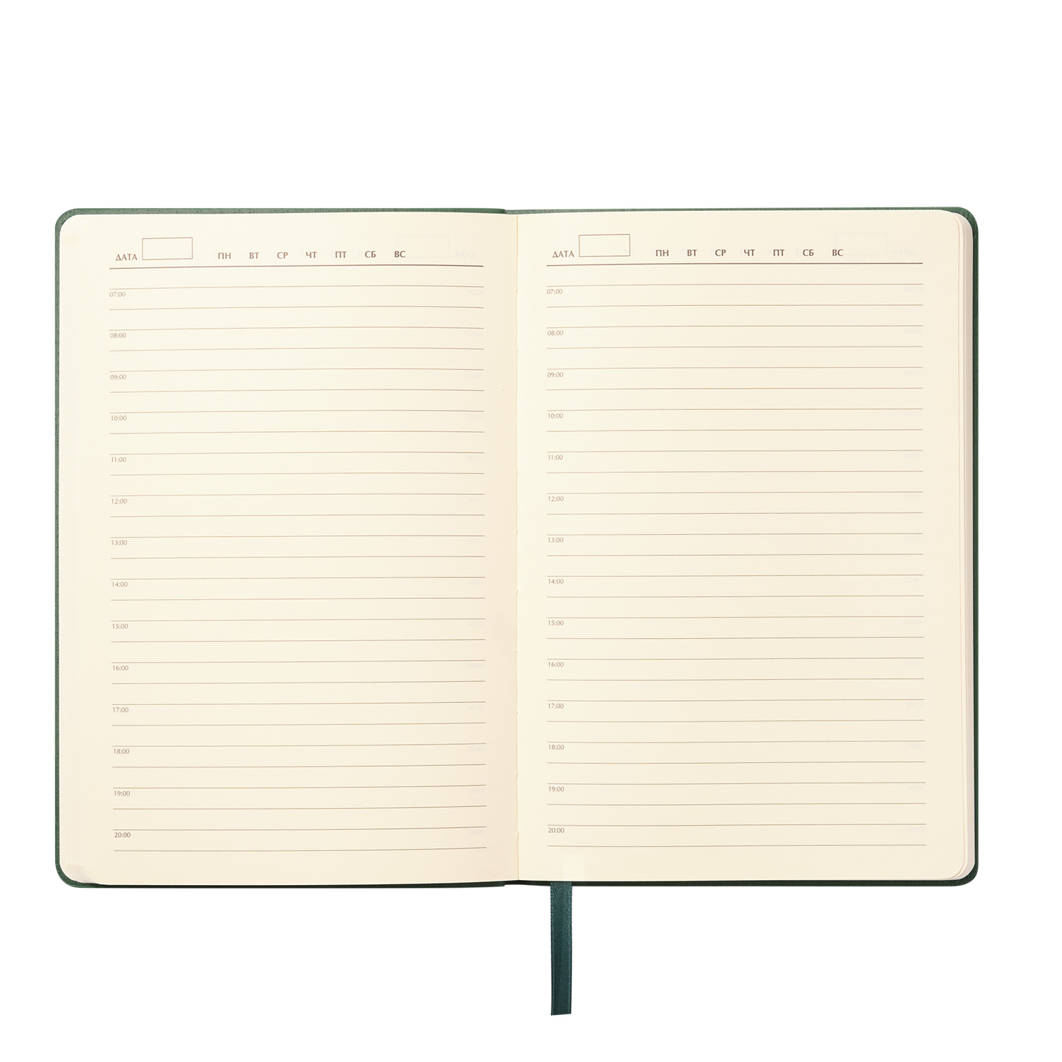 Кремовые форзац, нахзац и срез создают гармоничное сочетание с гладкими, шелковистыми страницами того же нежного оттенка. Удобное атласное ляссе поможет вам быстро найти нужную страницу. Этот ежедневник — не просто инструмент для планирования, а изысканный аксессуар, который подчеркнет ваш безупречный вкус.