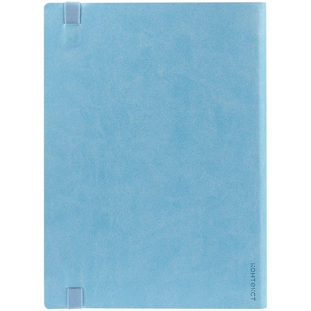 Ежедневник с гибкой обложкой выполнен из материала Latte, голубой JJ, и дополнен резинкой шириной 1 см, капталом и ляссе голубого цвета.