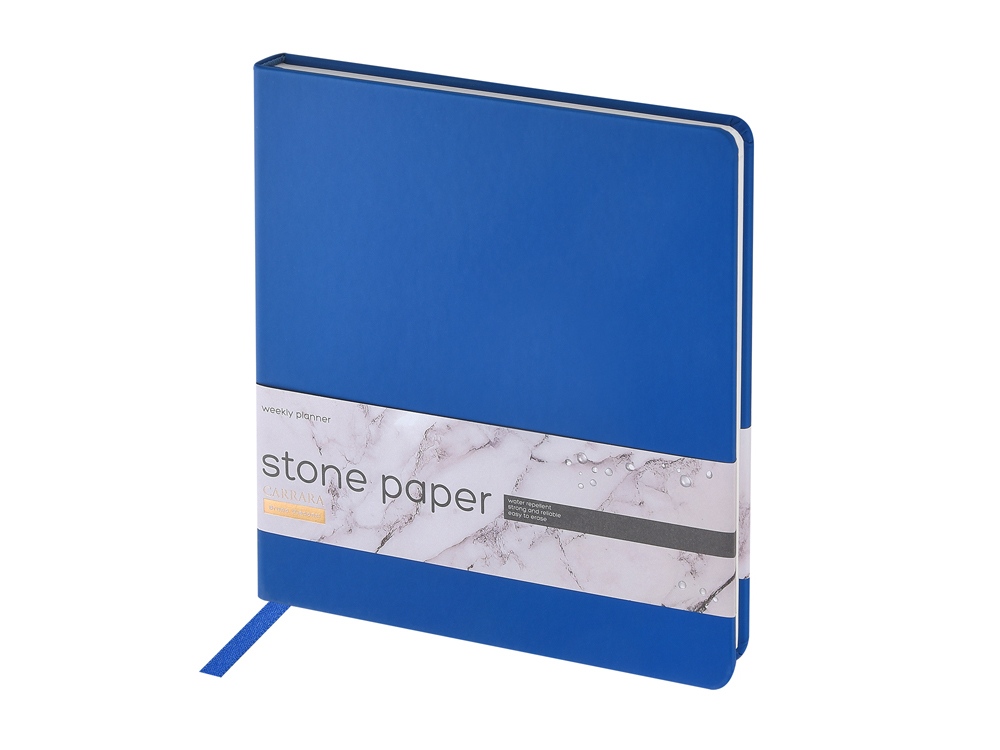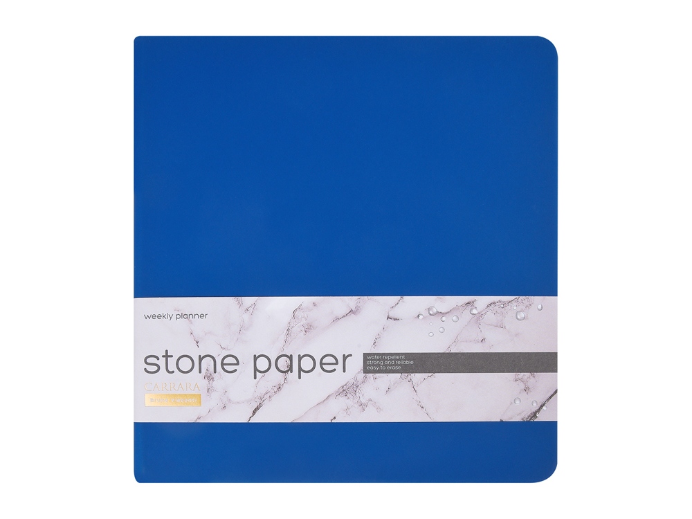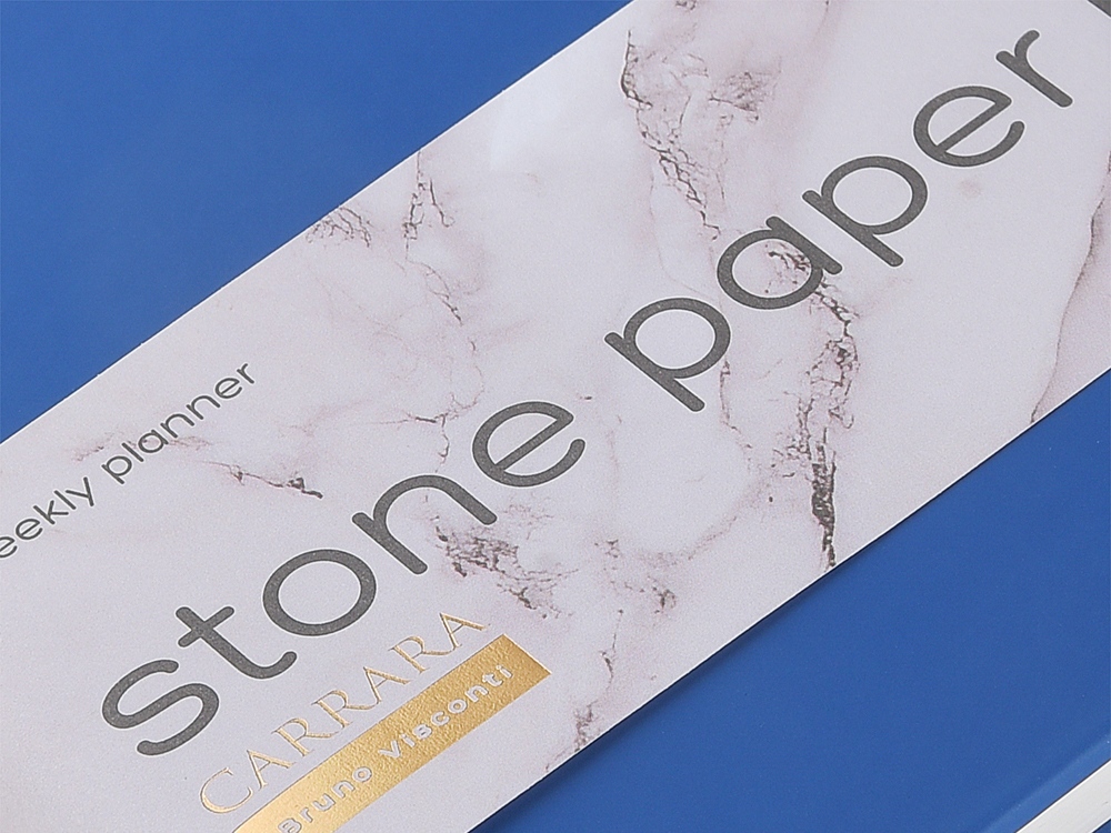 Блок произведен из каменной бумаги плотностью 144 г/кв.м, отличающейся особой гладкостью и повышенной прочностью. Она не боится воды и пролитого кофе, достаточно просто протереть сухой салфеткой.