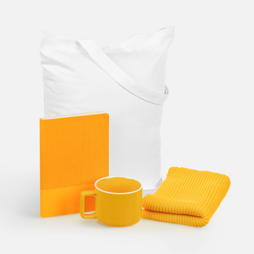 Кружка выверенной формы, сделает каждое чаепитие незабываемым. Уютный шарф с мягкой текстурой станет незаменимым аксессуаром в прохладную погоду, а ежедневник с фактурным тиснением на обложке сделает ведение записей особенным. Шопер в качестве упаковки набора делает его более современным и практичным.