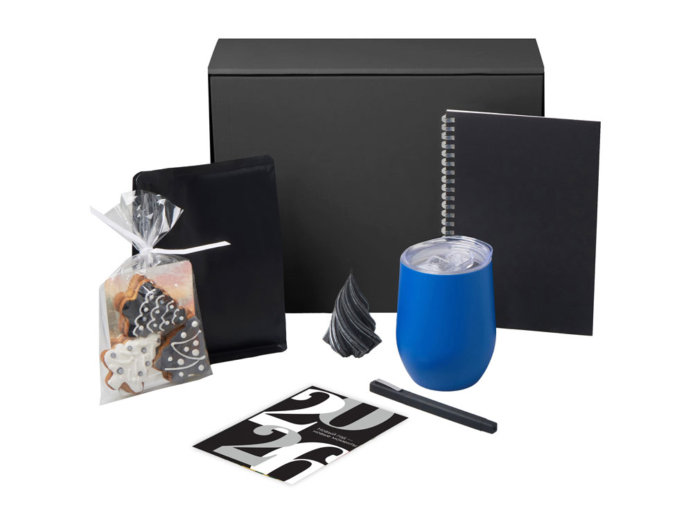 Подарочный набор c термокружкой, блокнотом, ручкой и свечкой, синий